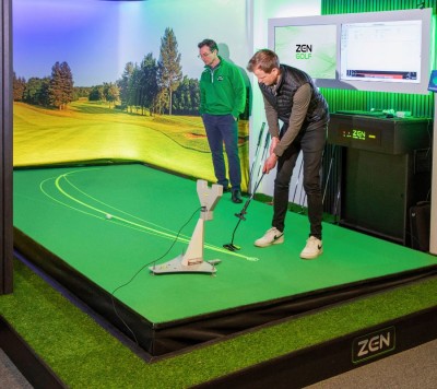 SAM PuttStudio can be paired with a tilting platform for advanced, feedback-driven break putt analysis and training. It also works on flat or inclined surfaces.